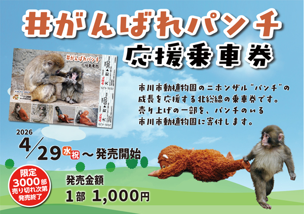 2026.04.24ニュースリリース5/17(日)「市川市動植物園×北総鉄道コラボまつり」開催&イベント開催記念として「#がんばれパンチ 応援乗車券」発売!