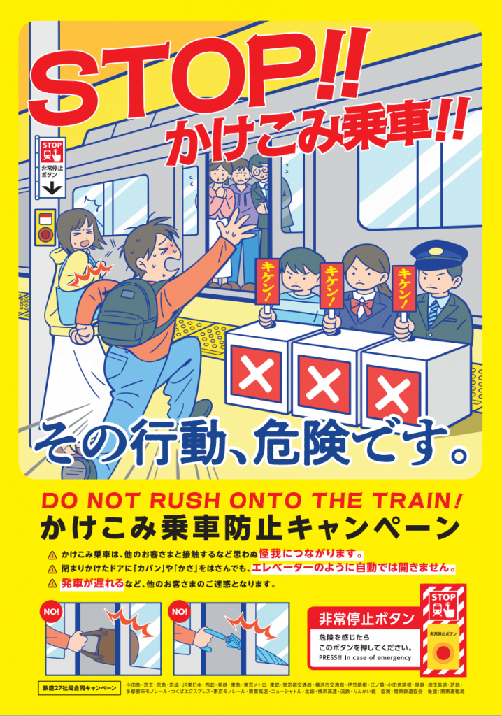 北総鉄道では、お客さまに安全に駅や列車をご利用いただくため、かけこみ乗車の危険性を呼びかけるとともに、危険を感じた際は非常停止ボタンを押していただくことを目的に、鉄道27社局と合同で「かけこみ乗車防止キャンペーン」を実施します。
