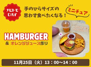 思わず食べたくなる!手のひらサイズのミニチュア 「ハンバーガー&オレンジジュース作り」